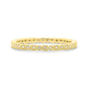 14kt yellow gold and diamond geometric band. There are 19 round brilliant cut diamonds weighing 0.03cts, F-G color and VS2-SI1 clarity.