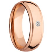 7 mm wide/Domed Stepped Down Edges/14K Rose Gold band with an arrangement of 1, .03 carat Round Diamond (ST) stones in a Bezel setting.