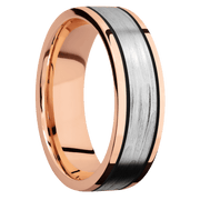14K Rose Gold with Polish Finish and 14K White Gold Inlay - 7 mm wide/Flat/14K Rose Gold band with one 4 mm Centered inlay of 14K White Gold.
