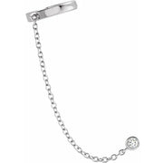14k ear cuff with chain and bezel set diamond. Diamond weighs 0.10cts. Available in natural or lab grown.