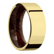 14K Yellow Gold with Polish Finish and Sapele - 8 mm wide Flat 14K Yellow Gold band featuring a Sapele sleeve.