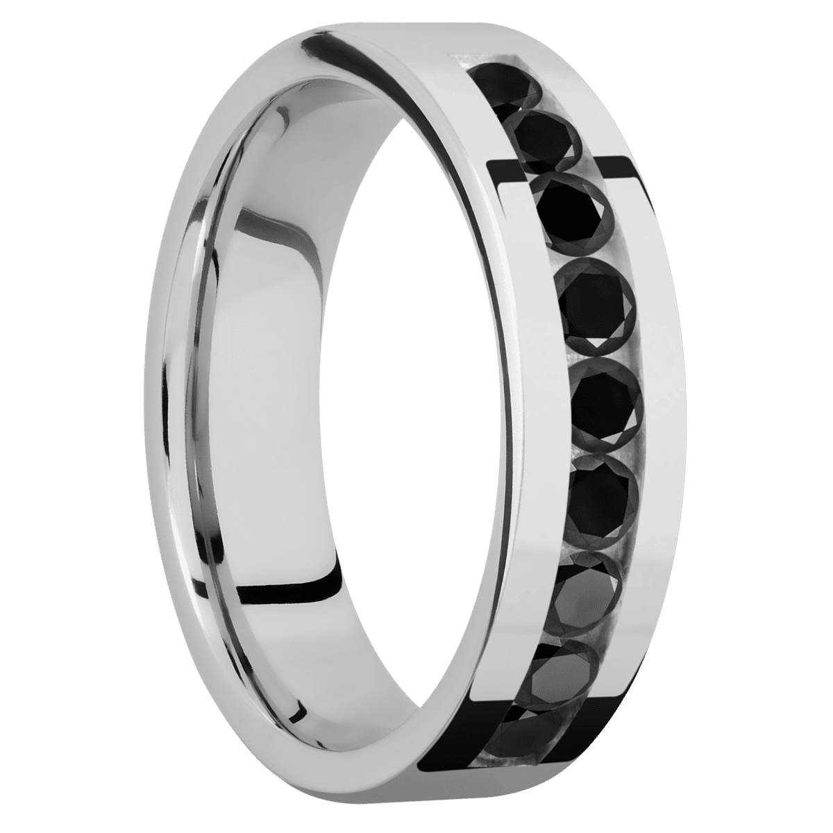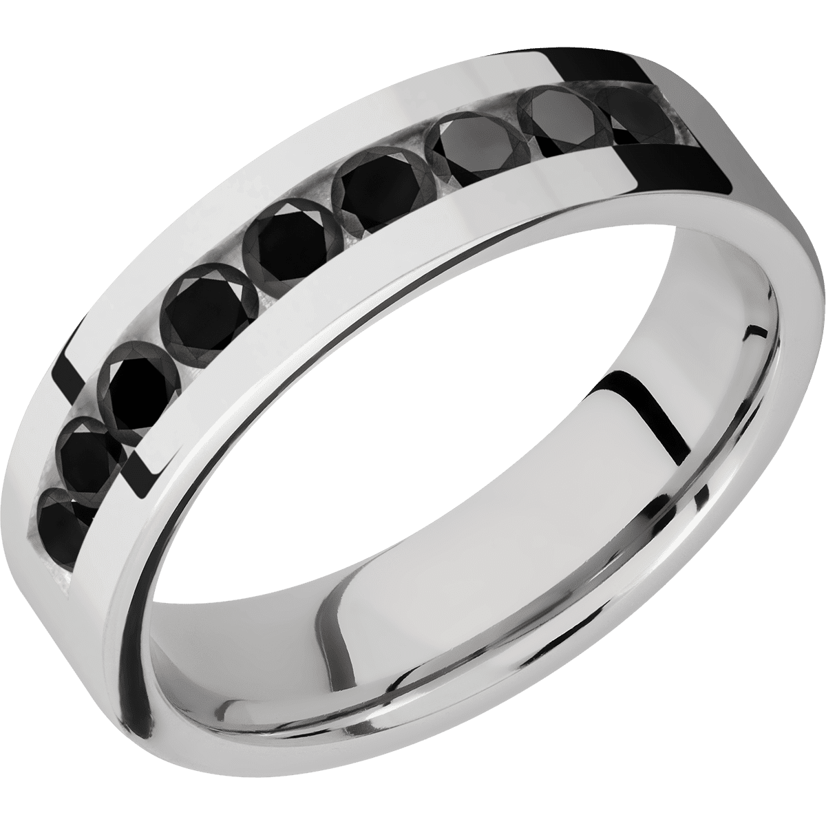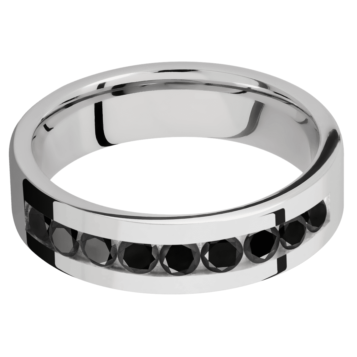 Cobalt Chrome with Polish Finish - 6 mm wide/Flat/Cobalt Chrome band with an arrangement of 9, .1 carat Round Black Diamond stones in a Channel setting. - TCW 0.9ct. - TCW 0.9ct.