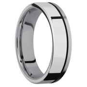 6 mm wide/Flat/Tantalum band with one 4 mm Off Center Edge inlay of Sterling Silver
