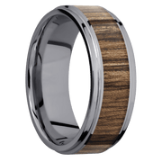 Tantalum with Polish , Polish Finish and Walnut Inlay - 8 mm wide/Flat Grooved Edges/Tantalum band with one 5 mm Centered inlay of Walnut
