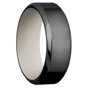 Zirconium with Anglesatin , Polish Finish and Bright Nickel - 8 mm wide High Bevel Zirconium band featuring a Bright Nickel sleeve.