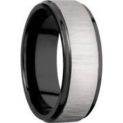 Zirconium with Crosssatinsilver , Polish Finish - 8 mm wide Flat Grooved Edges Zirconium band.