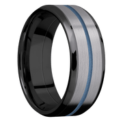 Zirconium with Polish , Polish Finish and Tantalum Inlay - 8 mm wide/Beveled/Zirconium band featuring inlays of Tantalum and Polar Blue.
