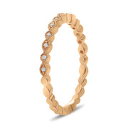 14KT ROSE GOLD AND DIAMOND BAND. THERE ARE 13 ROUND BRILLIANT CUT DIAMONDS WEIGHING 0.04CTS. THE DIAMONDS ARE F-G COLOR/VS2-SI1...