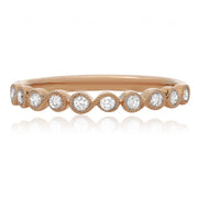 14kt rose gold diamond band 10 round brilliant cut diamonds, bezel set weighing 0.22cts G-H color/VS2-SI1 clarity Size 6.5