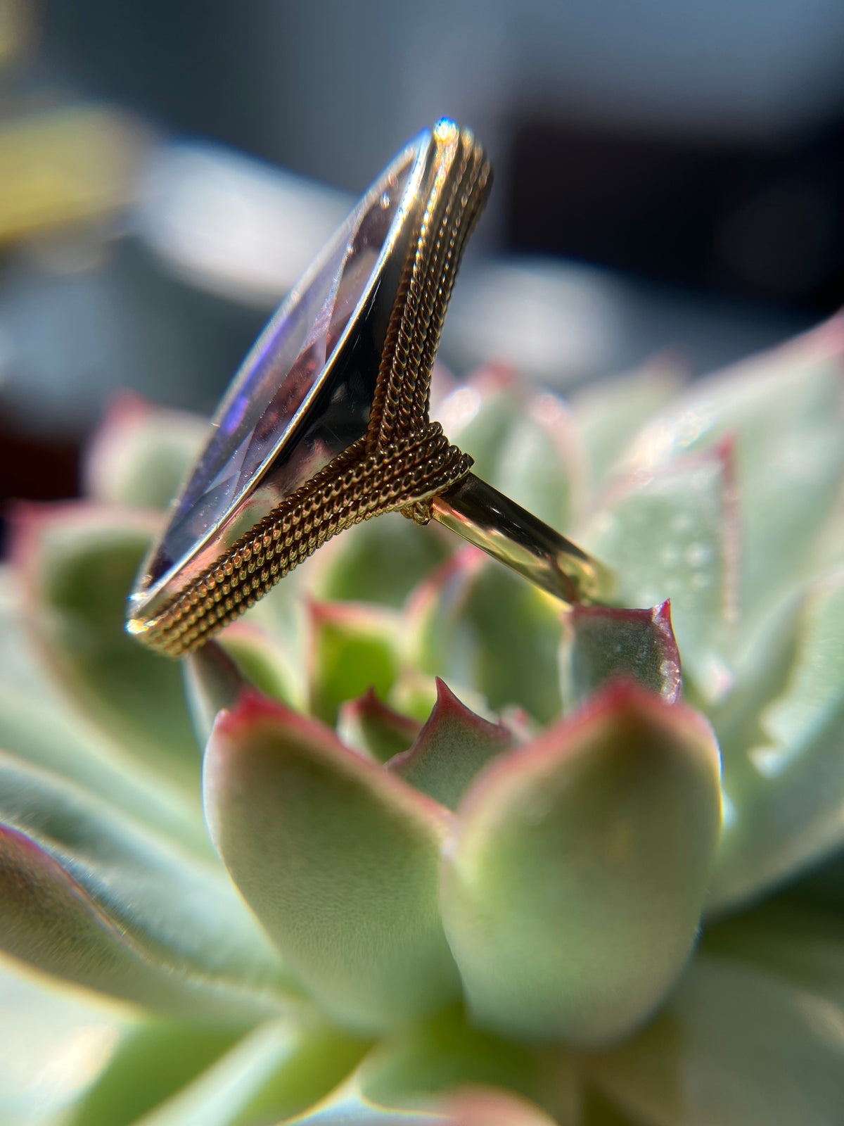 Check out this vintage 18k yellow gold ring with a HUGE synthetic alexandrite measuring 25x8mm! It's a size 7.5 but can be sized to fit your finger perfectly. And the best part? It's only $995! That's a steal for a ring this unique and stunning. Don't miss out on the chance to add some vintage flair to your jewelry collection.