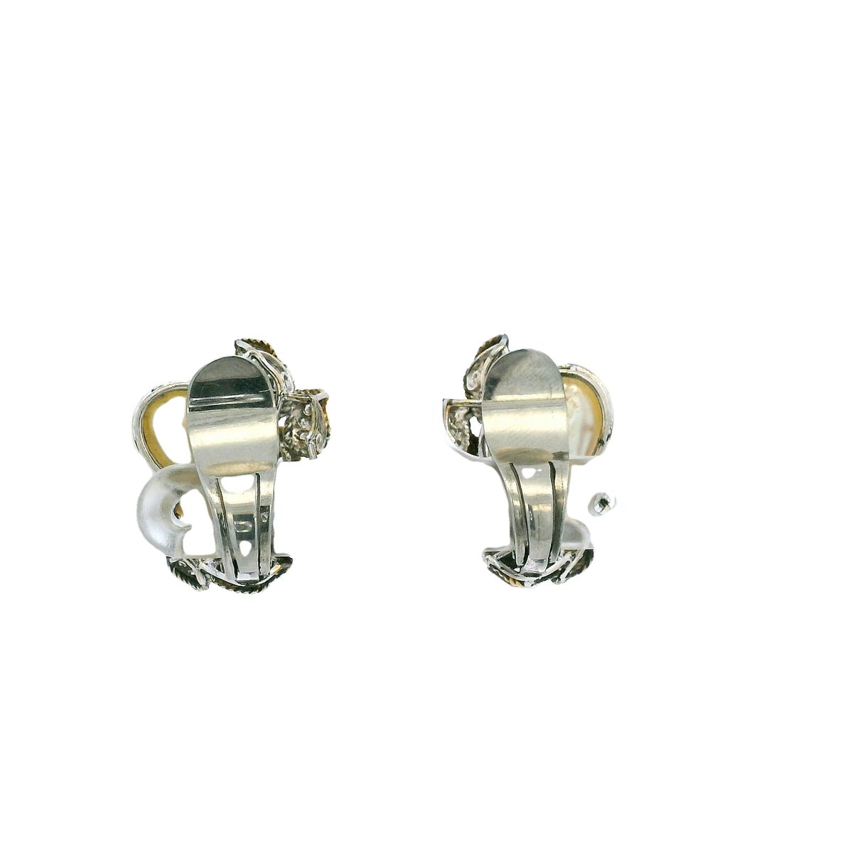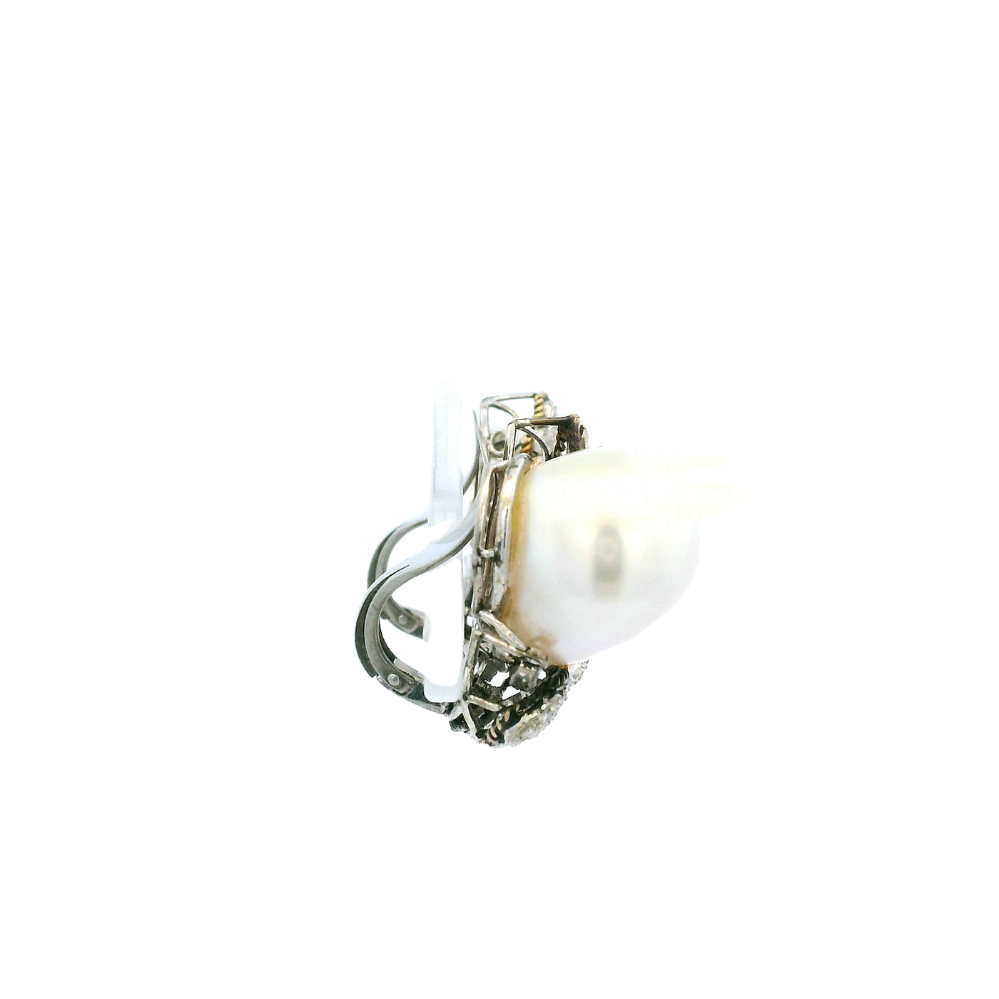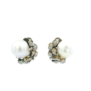 10K White Gold Clip On Earrings With 2 Baroque Pearls And 64 0.75cttw Various Shapes Diamonds