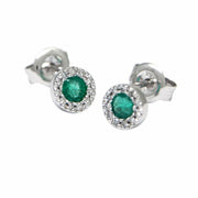 14k white gold diamond and emerald halo studs. There are 0.22cts of emeralds and 0.06cts of diamonds.