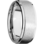 14K White Gold with Anglestone , Polish Finish - 8 mm wide Flat Grooved Edges 14K White Gold band.