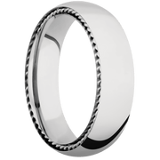 14K White Gold with Polish Finish and 14K White Gold Inlay - 6 mm wide/Domed/14K White Gold band with two 1 mm Sidebraid inlays of 14K White Gold.