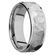 14K White Gold with Rock , Polish Finish - 8 mm wide Flat Grooved Edges 14K White Gold band.