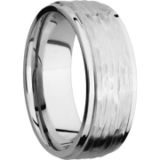 14K White Gold with Treebarkh , Polish Finish - 8 mm wide Flat Grooved Edges 14K White Gold band.