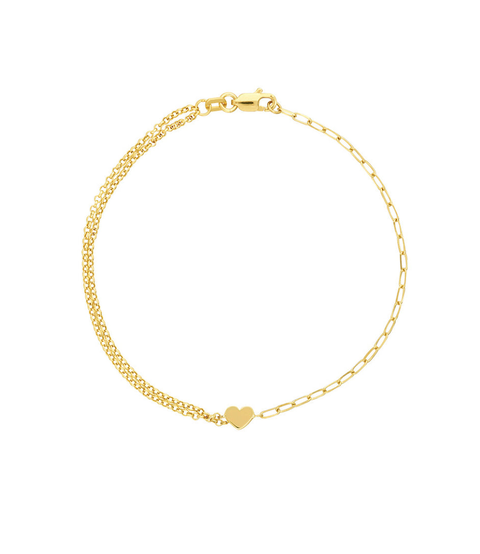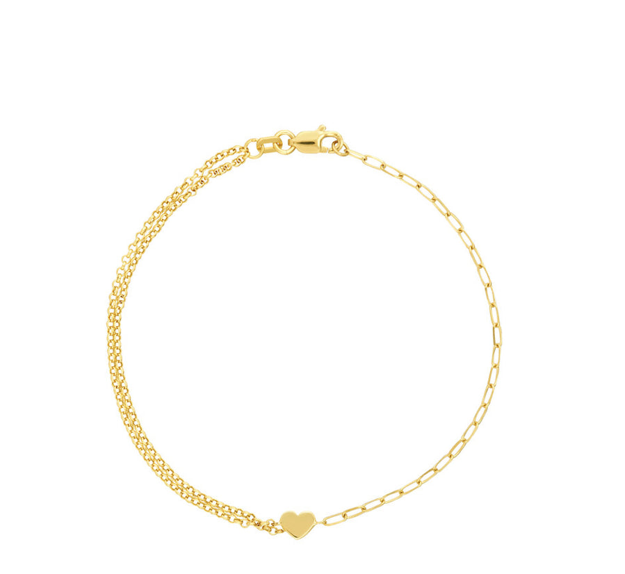 50/50 Paper Clip + Double Rolo Heart Bracelet