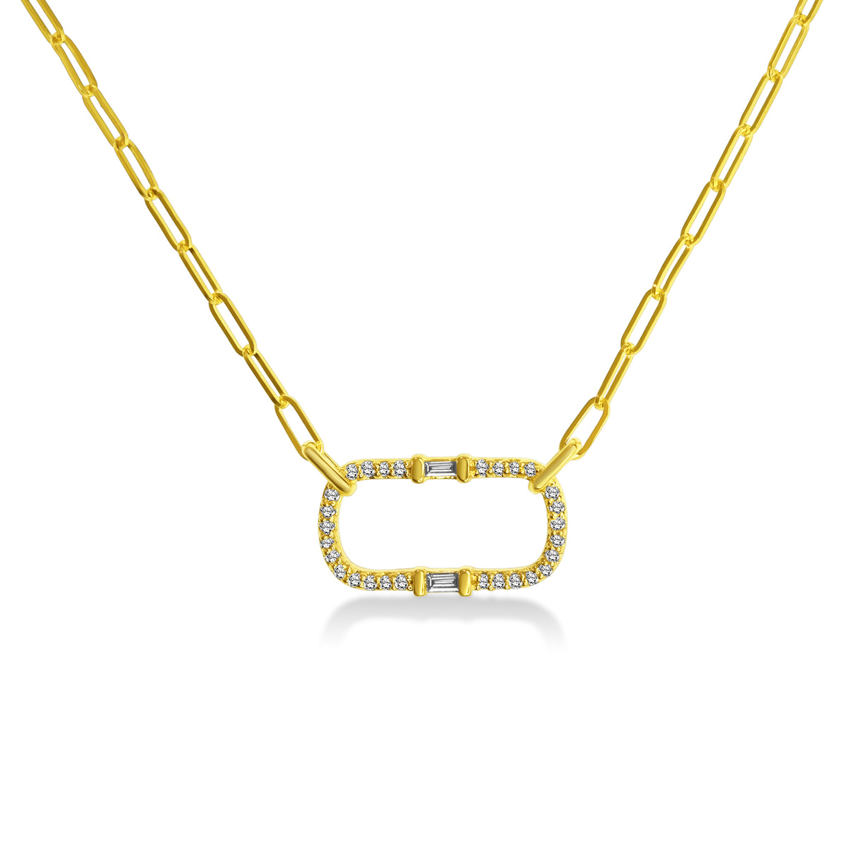 Be on trend with this beautiful diamond paper clip chain necklace. 14k yellow gold featuring 0.12cts of round brilliant cut diamonds and 0.05cts of baguette diamonds. Available in yellow, rose or white gold. Please allow 7-10 days for shipping. Contact us for rush orders