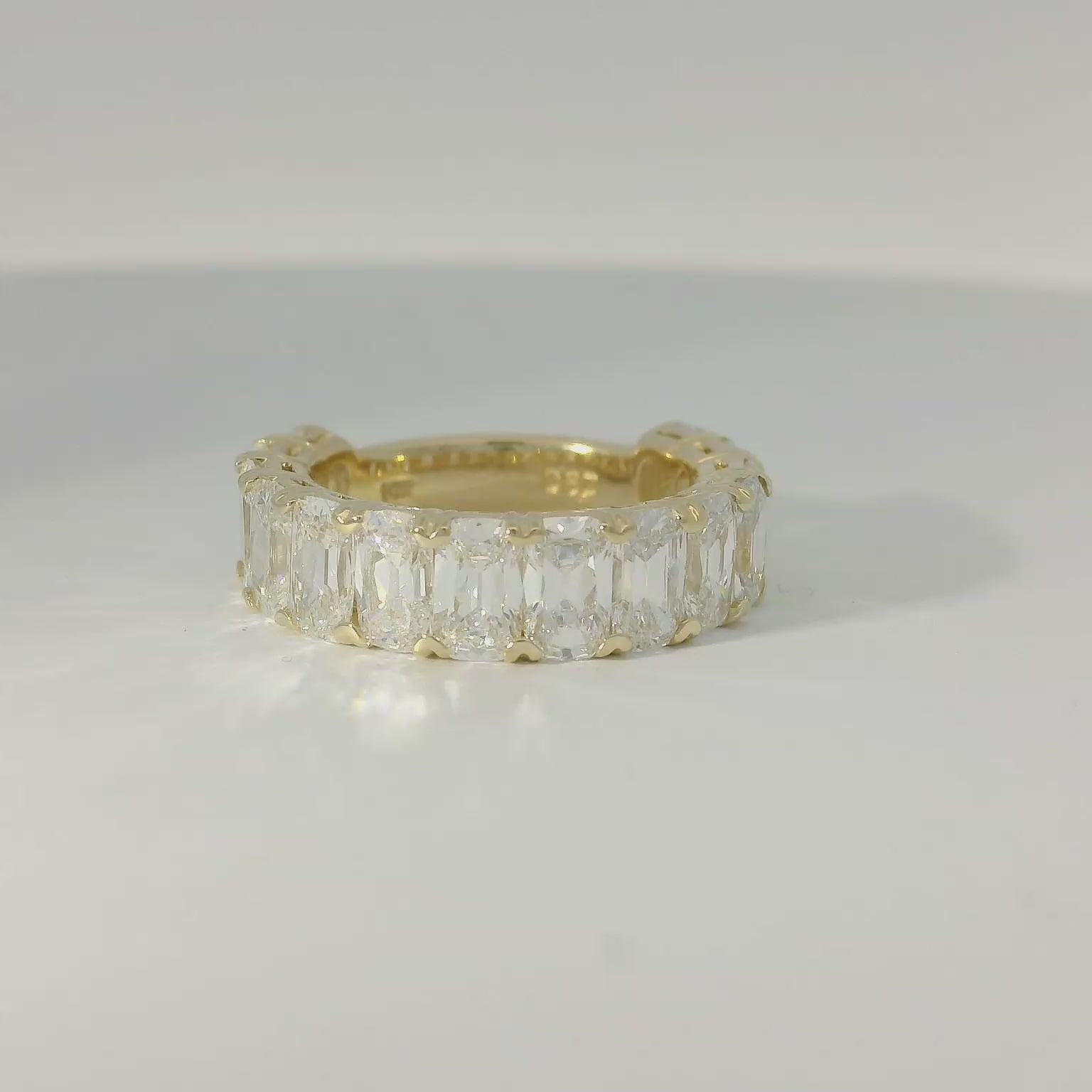 This exquisite diamond ring showcases a stunning array of perfectly cut stones set in a luxurious gold band. Its timeless elegance and sparkling brilliance make it the perfect accessory for any special occasion, adding a touch of sophistication and glamour to your ensemble.