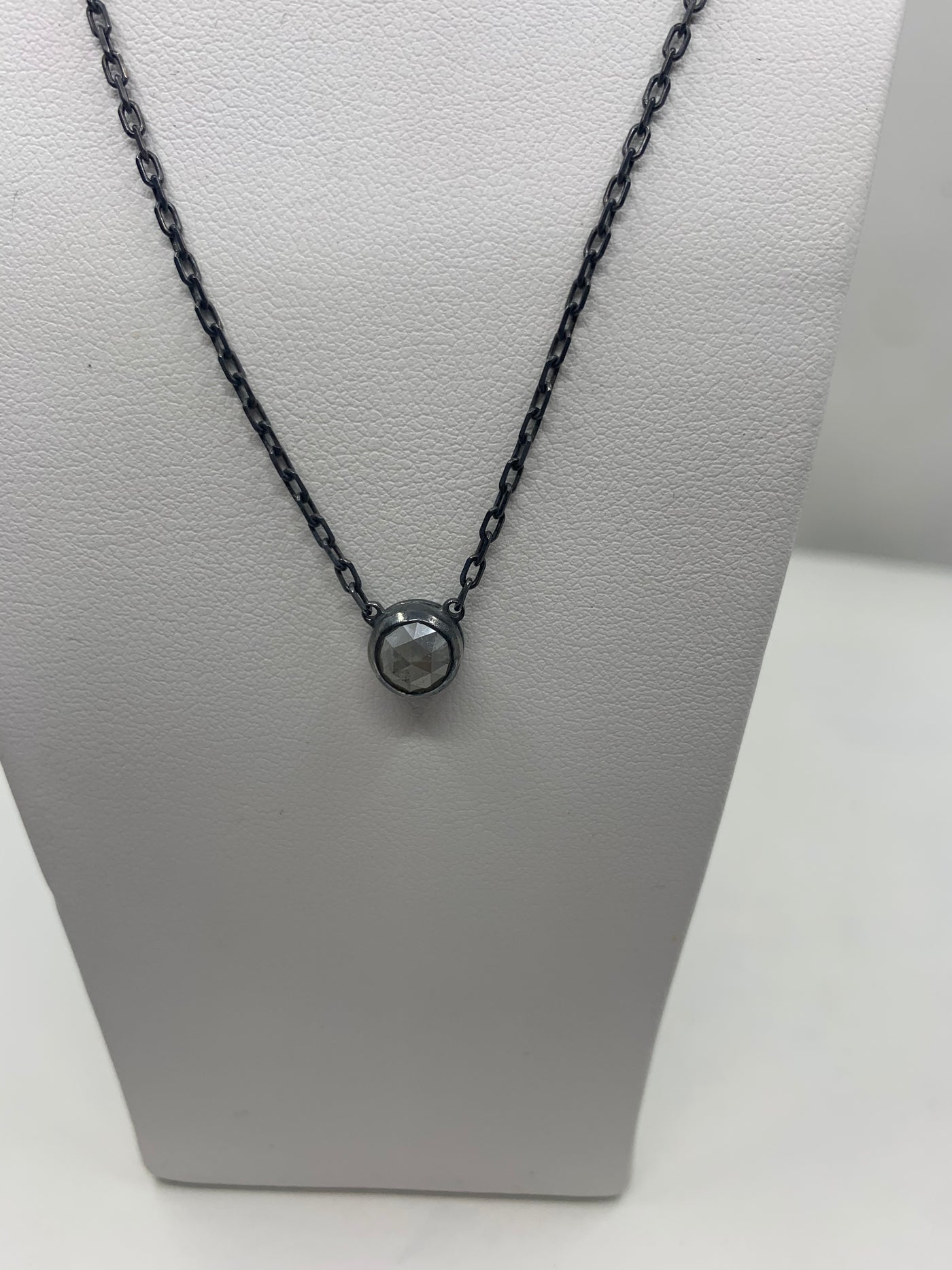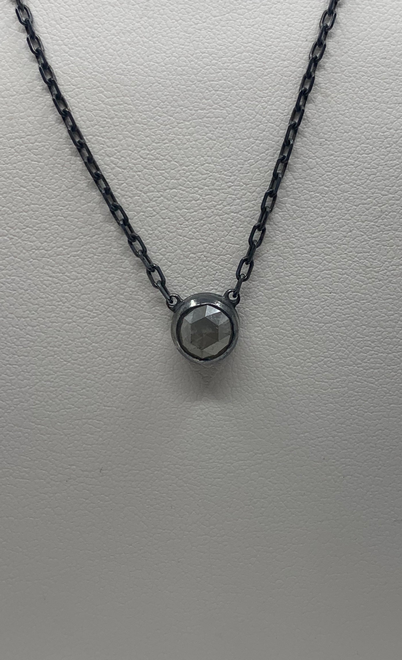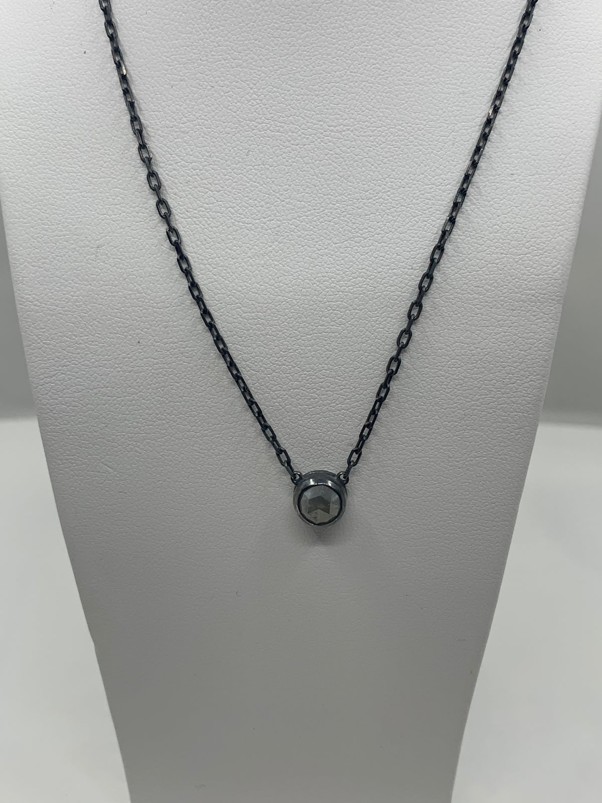 Blackened sterling silver rough cut diamond necklace weighing 1.24cts.