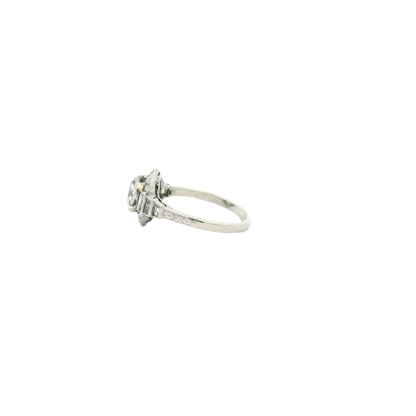 14K White Gold Vintage Engagement Ring Size 5.25 With One 1.06Ct Miners Cut K Vs1 Diamond And 0.65Tw Baguette Diamonds