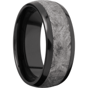 Zirconium with Polish Finish and Meteorite Inlay - 8 mm wide/Domed/Zirconium band with one 5 mm Centered inlay of Meteorite.