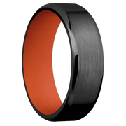 Zirconium with Satin , Polish Finish and Hunter Orange - 7 mm wide Beveled Zirconium band featuring a Hunter Orange sleeve.